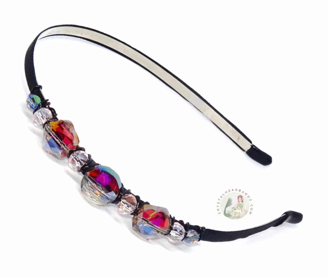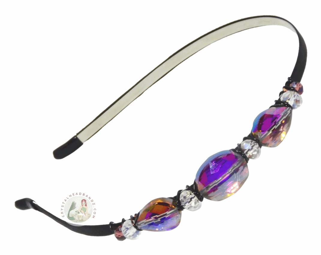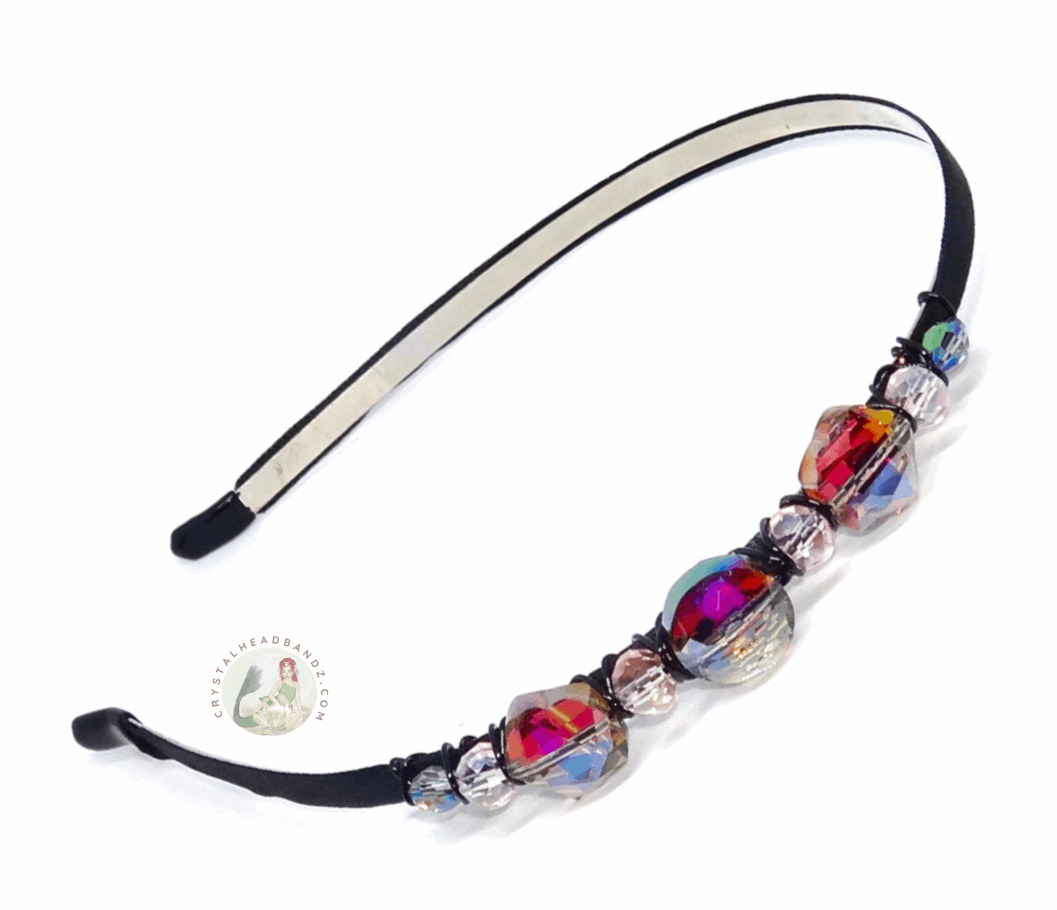 Iridescent Austrian crystal beads embellished comfortable headband, accented with sparkly, fancy crystal seed beads.