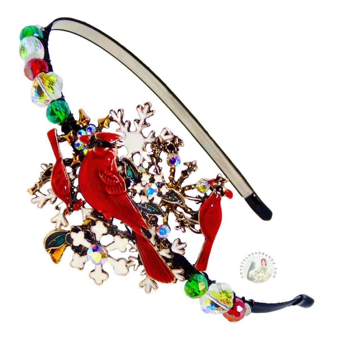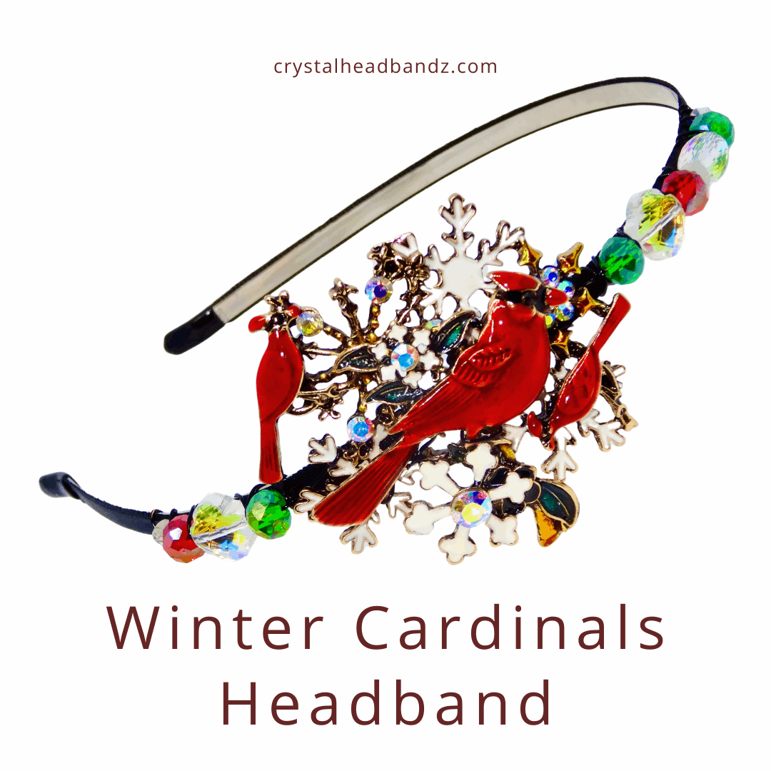 Elevate your winter style with this charming side decorated headband, featuring delicate red cardinals and snowflakes. Crafted for all-day comfort, it's embellished with shimmering Austrian crystal beads that catch the light beautifully. Perfect for adding a touch of seasonal elegance to any outfit, whether you're heading to a holiday gathering or simply embracing the festive spirit.